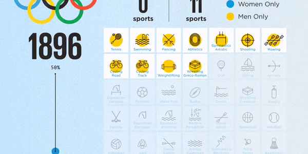 By comparison, in 1900, only 2.2% of the nearly 1,000 athletes that participated in the Olympics were women.